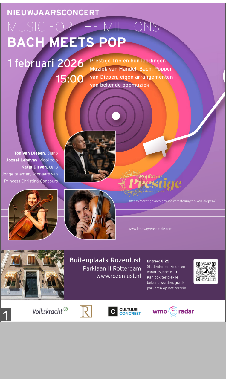 Op zondag 1 februari 2026 om 15:00 presenteert Buitenplaats Rozenlust een bijzonder nieuwjaarsconcert waarin klassieke meesterwerken en pop muziek elkaar ontmoeten. Het Prestige Trio en hun leerlingen brengen muziek van […]